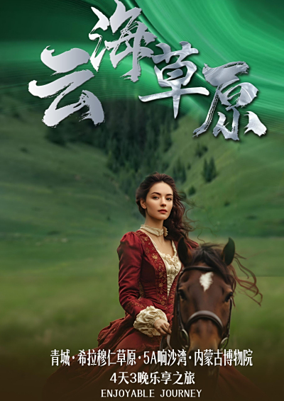 【云海草原】 希拉穆仁草原|5A响沙湾|内蒙古博物院 常规4日游 【品质专属】 ·全程陪游顾问细致相伴,西蒙管家24H在线即时响应 “兼行并进”打造周到服务双护盾 ·全天专车静候,落地无忧,“无缝对接”不等待 【奢居梦枕】 ·全程2晚网评3钻酒店 +1晚草原观景 蒙古包 【蒙味佳肴】 ·风味手把肉+西北地方菜+蒙古涮羊肉+飘香奶茶 【悦观美学】 ·探寻神秘之境--希拉穆仁大草原 ·畅玩沙海奇境--中国5A景区响沙湾 ·激情狂欢启幕--欢迎礼下马酒+拜访田园牧民+篝火盛宴 【专赠予你】 ·吉祥哈达+原生态蒙古茶点+能量矿泉水